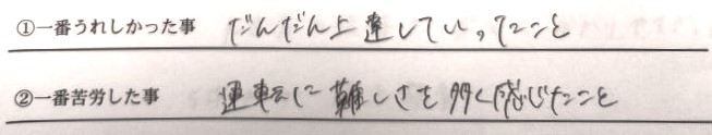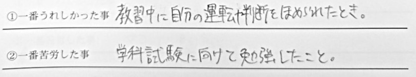 教習中に挫けそうになった日、できなかったことができるようになった日、