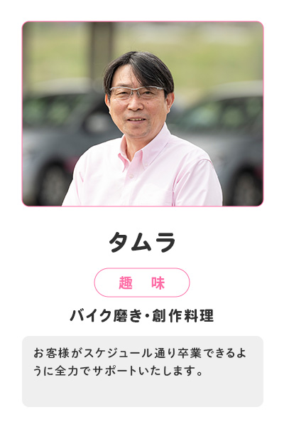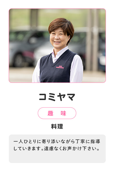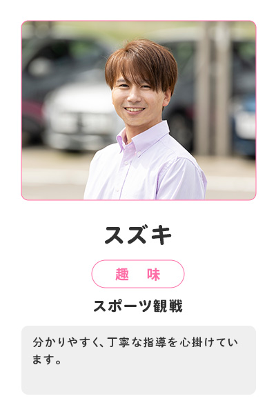 『うおちゅう』の魅力は、明るくアットホームな雰囲気と、安心して学べる丁寧な指導!受付スタッフが笑顔でお迎えし、初めての方でもリラックスして教習を受けられます。教官は優しく、一人ひとりのペースに合わせた丁寧な指導でしっかりサポート。